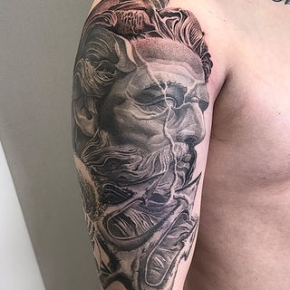 Realism Tattoos: My realism tattoos are all about lifelike detail. Whether it’s a portrait or a detailed scene, I aim to bring your vision to life with precise, realistic rendering.